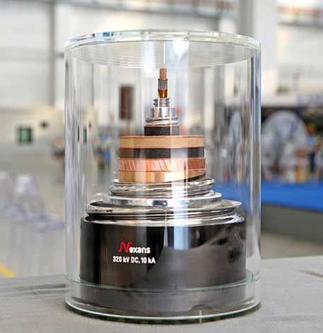 Nexans designed and built a 320 kV DC superconducting loop including a single 30 m cable carrying a current of 10 kA for a rated power transmission capacity of 3.2 GW.